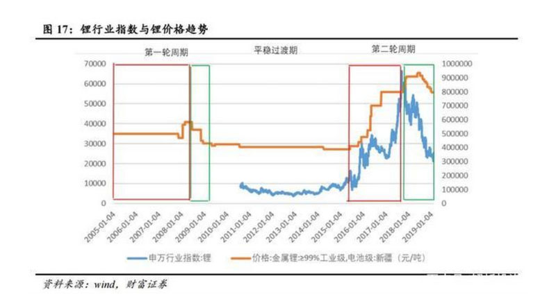 自2000年以來,鋰行業(yè)經(jīng)歷了兩輪價格周期波動,第一輪周期是2005-2009年,第二輪周期是從2015至今。碳酸鋰作為鋰電池制造的主要原材料,其價格從2000年的2000美元/噸,受益于2005-2009年的3C電子時代以及自2015年以來的動力電池時代的影響,一路上漲到最高峰的24000美元/噸,價格增長了2倍,成為名副其實的“貴金屬”。