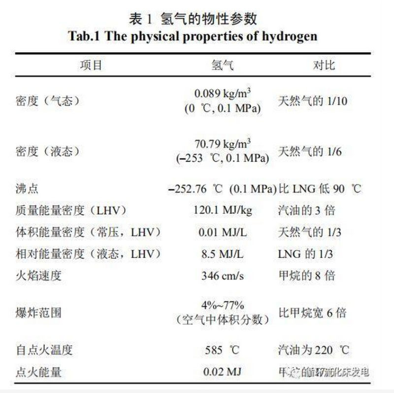 氫氣燃燒只產(chǎn)生水,因此被認(rèn)為是最清潔、真正實(shí)現(xiàn)零排放的能源。但由于其二次能源的基本屬性,氫氣的清潔和環(huán)保性不應(yīng)僅體現(xiàn)在最終被利用時(shí),還要著眼于生產(chǎn)氫氣的一次能源的來源以及氫氣的制備、運(yùn)輸、存儲(chǔ)和最終使用等環(huán)節(jié),從全生命周期的角度來考察。這些環(huán)節(jié)都需要消耗能源資源,也可能會(huì)帶來相應(yīng)的污染物與溫室氣體排放。氫氣的物性參數(shù)見表1。