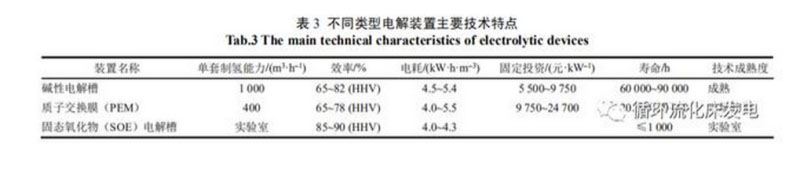 制氫裝置在國(guó)內(nèi)外均有商業(yè)化運(yùn)行。其中,PEM電解水制氫裝置成本較高,一般是堿性電解水裝置的3倍左右3種電解裝置的主要技術(shù)特點(diǎn)對(duì)比見表3。