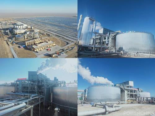 該項(xiàng)目由80個(gè)線性菲涅爾太陽能集熱回路,1套儲(chǔ)熱系統(tǒng)(二元熔鹽),1套蒸汽發(fā)生系統(tǒng),1套高溫高壓、一次中間再熱汽輪發(fā)電機(jī)系統(tǒng)以及其他輔助設(shè)施組成,配置15小時(shí)儲(chǔ)熱,可實(shí)現(xiàn)24小時(shí)連續(xù)發(fā)電,年發(fā)電量約2.14億千瓦時(shí)。項(xiàng)目由敦煌大成聚光熱電有限公司作為建設(shè)單位牽頭建設(shè)、中國電建集團(tuán)中南勘測設(shè)計(jì)研究院有限公司承擔(dān)EPC總承包工作,甘肅光明電力工程咨詢監(jiān)理有限責(zé)任公司負(fù)責(zé)工程監(jiān)理,主要參建單位包含了動(dòng)力區(qū)建安的山東電力建設(shè)第一工程有限公司、儲(chǔ)熱罐施工的上海藍(lán)濱石化設(shè)備有限責(zé)任公司、集熱島施工的蘭州大成科技股份有限公司以及常規(guī)島設(shè)計(jì)的西北電力設(shè)計(jì)院有限公司。