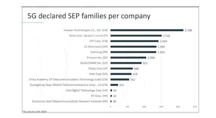 5G專利申請量排名,華為第一,中興第三,截至2019年6月15日