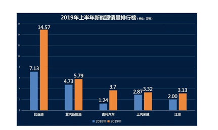 2019年上半年國內(nèi)市場新能源汽車銷售排行,前5名都是自主品牌