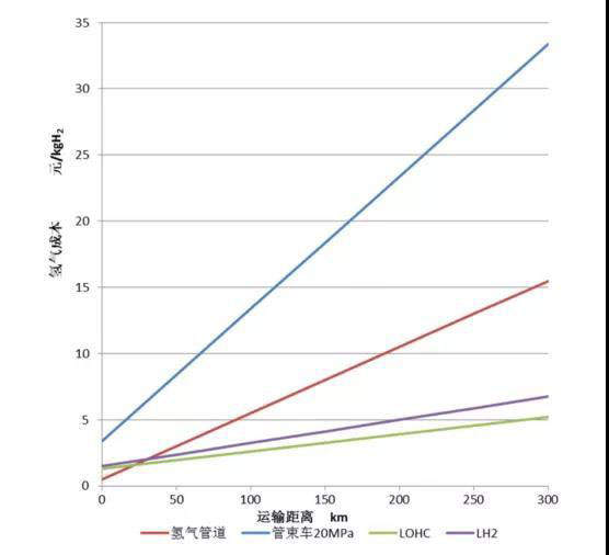 考慮運輸300km內(nèi),不同氫氣儲運方式的成本對比如圖3所示。