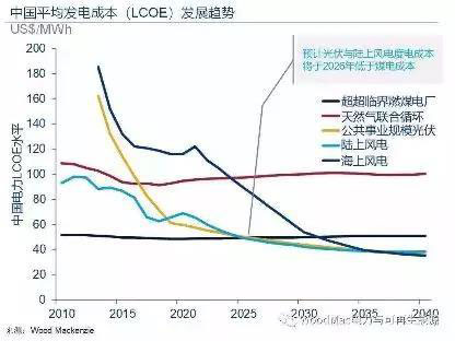 中國各能源品種度電成本發(fā)展趨勢