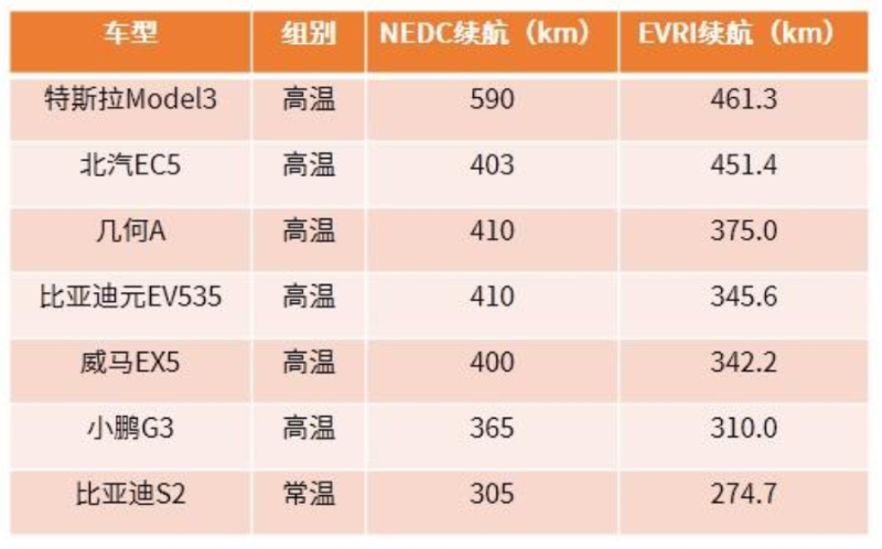 主要電動車的續(xù)航能力對比