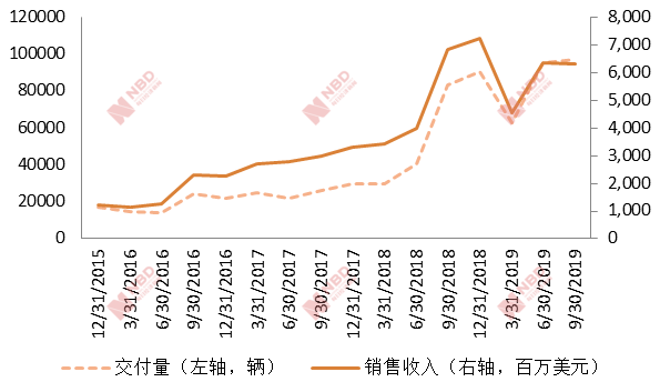 特斯拉的銷售收入與交付量