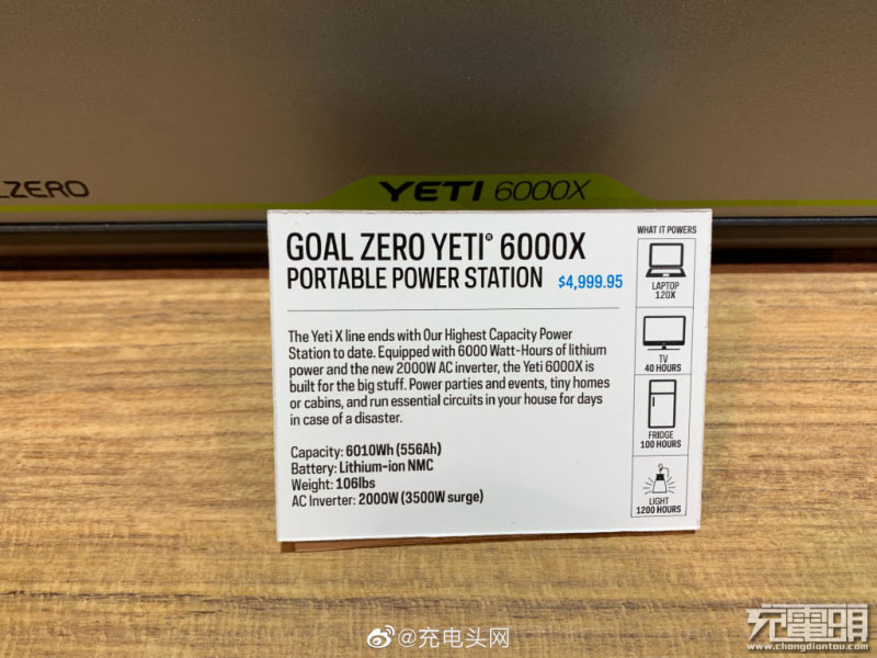 在此次CES2020展會(huì)上,來自美國專業(yè)便攜式電力設(shè)備生產(chǎn)廠商Goal Zero發(fā)布了一款容量高達(dá)6010Wh的移動(dòng)儲(chǔ)能電源,這一新品的推出刷新了我們對(duì)該類型產(chǎn)品的認(rèn)知,也打破了移動(dòng)儲(chǔ)能電源容量的新高度。Goal Zero這款新品的型號(hào)為Yeti 6000X,官方給出的參考價(jià)格為4999.95美元,約合人民幣35000元。