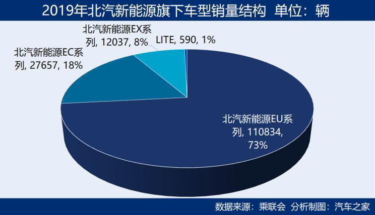 車型結(jié)構(gòu)方面,北汽新能源至今未走出“一招鮮”的境地,前兩年靠EC系列支撐,2019年主要靠EU系列支撐,而EC系列和EX系列今年銷量分別減少了70%和61%。而且,北汽新能源EU系列的出行市場消納比重超過了40%,真正啟動(dòng)個(gè)人消費(fèi)市場、豐富旗下產(chǎn)品結(jié)構(gòu)、提升車型市場競爭力,是北汽新能源未來需要解決的三個(gè)關(guān)鍵問題。