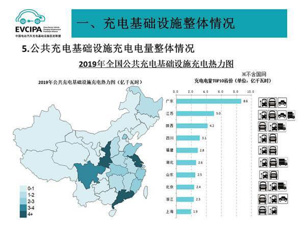 充電電量同樣集中度較高,2019年12月全國(guó)充電總電量約5.96億kWh,較上月增長(zhǎng)6.1千萬(wàn)kWh。