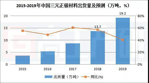 高工產(chǎn)研鋰電研究所(GGII)調(diào)研數(shù)據(jù)顯示,2019年中國(guó)鋰電三元正極材料市場(chǎng)規(guī)模285億元,同比增長(zhǎng)8.4%;出貨量19.2萬(wàn)噸,同比增長(zhǎng)40.4%。