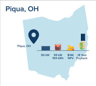在皮奎市,商業(yè)需求收費(fèi)很高(每千瓦16美元),與典型的獨(dú)立部署的太陽(yáng)能發(fā)電設(shè)施的14年投資回收期相比,對(duì)太陽(yáng)能+儲(chǔ)能項(xiàng)目的投資可以在不到8年的時(shí)間內(nèi)收回投資。對(duì)于俄亥俄州的典型中型商業(yè)客戶來(lái)說(shuō),每年將節(jié)省10.5萬(wàn)美元。