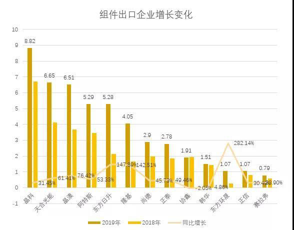 2019年全年,經(jīng)由中國海關(guān)的組件出口排名已出,晶科蟬聯(lián)第一(此處為出口量排名,并非企業(yè)出貨量排名)。