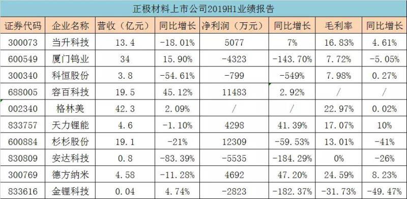 安達(dá)科技上半年實(shí)現(xiàn)營(yíng)收7976萬元,同比減少83.39%,歸屬于掛牌公司股東的凈利潤(rùn)-5535萬元,同比減少184.29%。毛利率更是從2018年同期的25.94%暴跌至-0.02%,表明其正極產(chǎn)品已處于虧損狀態(tài)。