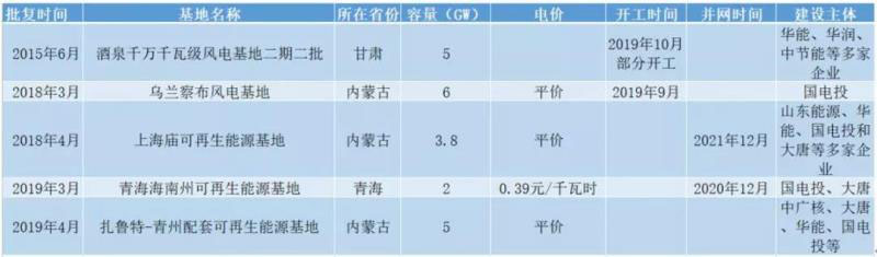在已經(jīng)獲得能源局批復(fù)的風(fēng)電基地中有三個為平價項目。其中,青海海南州可再生能源基地是青海省海南州特高壓外送基地電源配置項目,目前看來其為有補貼的項目,但是其補貼能否拿到會受并網(wǎng)進度影響。