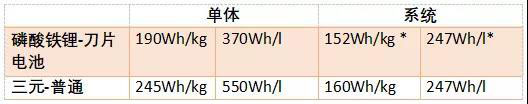 *刀片電池(質(zhì)量基于80%集成效率,體積基于傳統(tǒng)三元電池包集成效率45%的1.5倍為67%估計(jì))