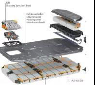 奧迪e-tron 電池包結(jié)構(gòu),注意橙色的線束占據(jù)的體積