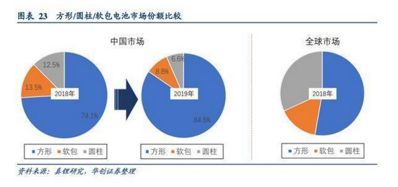 當(dāng)前鋰離子動力電池依然是圓柱、方形、軟包三類電芯三分天下。相比于特斯拉采用圓柱電池解決方案的與眾不同,方形電芯和軟包電池在全球其他主流車企和造車新勢力中有更廣泛的應(yīng)用。
