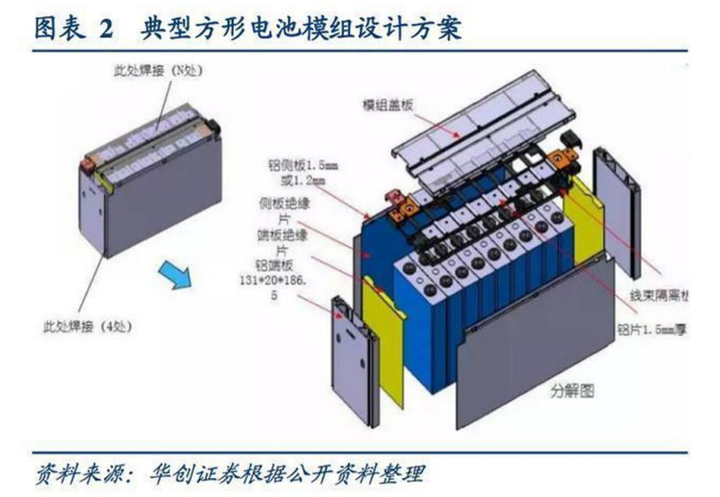 電池通過模組形式安裝于電池包中,其物理結(jié)構(gòu)設(shè)計可以對電芯起到支撐、固定和保護(hù)作用,方便對電芯進(jìn)行機(jī)械強(qiáng)度,電性能,熱性能和故障處理等方面管理。