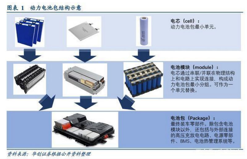 1、從電芯(Cell)到模組(Module)再到電池包(Package),電池Pack基本情況介紹