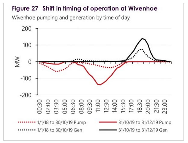這種充電方式的變化幾乎是即時的,抽水蓄能設(shè)施在利用日間過剩的太陽能電力發(fā)揮了更加積極的作用,而在晚上的抽水量則更少。