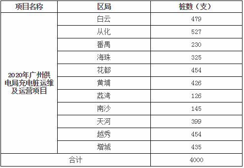 標(biāo)包名稱::2020年廣州供電局充電樁運維及運營項目