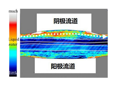 當燃料電池從大電流密度工況切換到極小電流密度工況時(比如汽車停車進入怠速工況),氫氣循環(huán)泵提供的氫氣量也隨著減少,電堆出口處的液態(tài)水則可能被倒吸回電池內(nèi)。這是因為流路孔徑通常較小,流道表面表現(xiàn)為親水性時,在毛細作用下液態(tài)水回吸至電池內(nèi)。此時,如果汽車仍保持怠速工況,則有可能發(fā)生水淹現(xiàn)象。