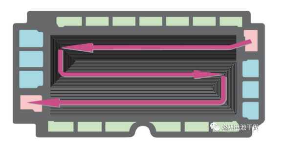 針對出口倒吸,這種現(xiàn)象主要是因為在毛細力作用下,出口處未及時排出的液態(tài)水被吸回電池內(nèi)。第一種解決方案是增大出口處流路的水力直徑,水力直徑增大則毛細力減少。但這種辦法會造成出口處陽極流道所占的面積比例增加,電池形狀就會比較接近正方形,同時也需要考慮單電池各個部分的面積配比。第二種方案是對流道進行疏水化處理,該方法相對簡單,但因電堆通常由幾百片單電池層疊組成,疏水表面處理的成本較高。第三種則是在切換為小電流密度之前,大量流通氫氣,使液態(tài)水存量為零,該方案會導致氫氣的消耗量上升,一定程度影響車用續(xù)航里程。