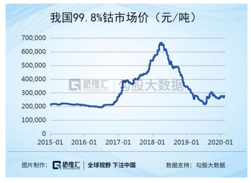 鈷作為一種稀有金屬,價(jià)格比較昂貴,但是對(duì)于穩(wěn)定三元電池層狀結(jié)構(gòu)和提高循環(huán)次數(shù)有重要作用。在2017-2018年,由于新能源汽車迅速放量,而上游鈷產(chǎn)能沒跟上,價(jià)格出現(xiàn)暴漲,價(jià)格一度超過60萬元/噸。后來隨著產(chǎn)能擴(kuò)產(chǎn),價(jià)格出現(xiàn)回落,現(xiàn)在價(jià)格也有28萬元/噸。鈷作為稀缺資源,其價(jià)格波動(dòng)將很大程度上影響三元材料的價(jià)格。如果新能源汽車產(chǎn)量進(jìn)一步增長(zhǎng),意味著鈷價(jià)可能重新暴漲。寧德時(shí)代、松下、LG化學(xué)等電池廠商都在努力推行電池?zé)o鈷化,不過還未實(shí)現(xiàn)。