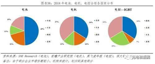 電池、電機(jī)、電控是新能源汽車核心技術(shù)。1)電池:據(jù)SNE Research披露,2018年全球TOP10企業(yè)動(dòng)力電池裝機(jī)量,CATL、松下、比亞迪、LG化學(xué)、AESC、三星SDI、Farasis、國軒、力神、億緯分別為:21.3、20.7、11.6、7.4、3.7、3.0、3.3、3.2、2.8、1.9GWh;其中中國、日本、韓國分別占比49.2%、21.4%、10.7%,合計(jì)81.3%。2)電機(jī):據(jù)前瞻產(chǎn)業(yè)研究院披露,2018年全球新能源汽車電機(jī)市場(chǎng),美國、日本、德國分別占比34%、16%、13%;其中中國新能源汽車車用電機(jī)基本實(shí)現(xiàn)國產(chǎn)替代。3)電控IGBT:IGBT作為新能源汽車電控系統(tǒng)核心零部件,據(jù)英飛凌年報(bào)披露,2018年全球IGBT領(lǐng)域,英飛凌、三菱、富士電機(jī)、安森美、賽美控分別占比28.6%、15.2%、9.7%、7.2%、5.7%;按國籍分,德國34.3%、美國7.2%、日本24.9%;2018年我國IGBT領(lǐng)域進(jìn)口依存度約 90%。