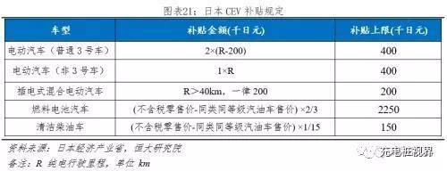 新能源財(cái)政補(bǔ)貼由經(jīng)濟(jì)產(chǎn)業(yè)省主導(dǎo),分為四類:1)節(jié)能車補(bǔ)貼;2)CEV(CleanEnergy Vehicle)導(dǎo)入補(bǔ)貼;3)充電設(shè)施補(bǔ)貼;4)加氫設(shè)備補(bǔ)貼。其中節(jié)能車補(bǔ)貼于2012年9月廢除,被CEV補(bǔ)貼取代;加氫設(shè)備補(bǔ)貼主要針對(duì)氫燃料電池,充電設(shè)施補(bǔ)貼主要針對(duì)充電樁,當(dāng)前新能源汽車主要推動(dòng)力在“CEV導(dǎo)入補(bǔ)貼”。2012年6月日本舉行行政評(píng)議會(huì)審議了“CEV導(dǎo)入補(bǔ)貼”,并制定具體路線圖,實(shí)施機(jī)構(gòu)為隸屬于經(jīng)濟(jì)產(chǎn)業(yè)省的“新一代汽車振興中心”,最新規(guī)定如下表所示,電動(dòng)車補(bǔ)貼與純電續(xù)航里程正相關(guān)。并要求:1)消費(fèi)者獲取CEV車輛補(bǔ)助后,必須持有該車3-4年,如果不得已需要賣出須提前向中心申請(qǐng);2)公式計(jì)算結(jié)果補(bǔ)助金不足15千日元的,不給予補(bǔ)助;3)當(dāng)EV/PHV與汽油車的價(jià)格差縮小至50萬日元,且年銷量增加至10~15萬輛時(shí),將不再作為補(bǔ)貼對(duì)象。