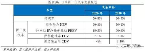 2020年、2030年新能源汽車分別占比15-20%、20-30%。2010年4月日本經(jīng)濟(jì)產(chǎn)業(yè)省發(fā)布《下一代汽車戰(zhàn)略2010》,將下一代汽車定義為:非插電式混合動(dòng)力汽車(HEV)、純電動(dòng)汽車(BEV)、插電式混合動(dòng)力汽車(PHEV)、燃料電池汽車(FCV)、清潔柴油汽車(CDV)等。并首次公告發(fā)展目標(biāo):到2020年,下一代汽車將在新車銷量中力爭(zhēng)達(dá)到20%~50%;到2030年,下一代汽車將在新車銷量中力爭(zhēng)達(dá)到50%~70%,并沿用至今。