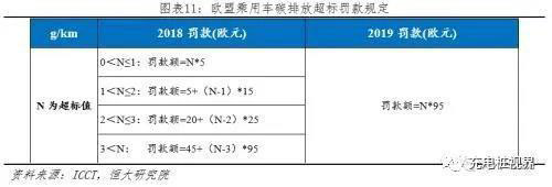 4)罰款力度更重:2018年根據(jù)碳排放具體值分階段處罰,但是從2019年起全部按照最高標(biāo)準(zhǔn)處罰,每超標(biāo)1g/km罰款95歐。2018年歐盟范圍內(nèi)注冊(cè)新乘用車碳排放平均值121g/km,銷售1562萬輛;假設(shè)2020年碳排放和銷量保持不變,需要罰款(121-95)×1562×95=385.8億歐元。