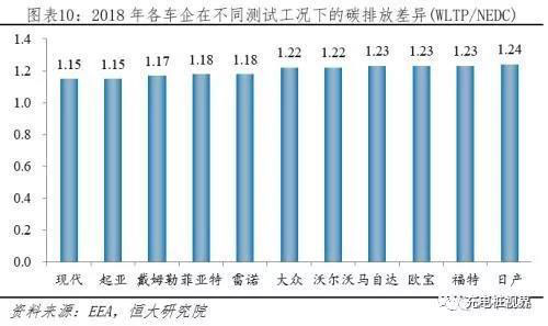 3)測(cè)試標(biāo)準(zhǔn)更嚴(yán):2021年開始執(zhí)行WLTP測(cè)試標(biāo)準(zhǔn),相比NEDC測(cè)試標(biāo)準(zhǔn)而言,WLTP測(cè)試標(biāo)準(zhǔn)測(cè)試距離長、周期多、速度快,更接近實(shí)際。根EEA發(fā)布的2018年歐盟乘用車測(cè)試數(shù)據(jù)顯示,WLTP標(biāo)準(zhǔn)下乘用車碳排放相比NEDC平均高出21%左右,主流車企測(cè)試結(jié)果顯示高出15%-24%。