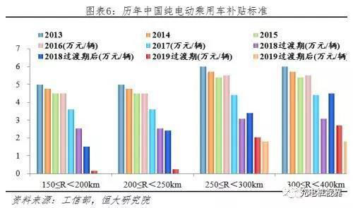 財(cái)政補(bǔ)貼自2017年開始明顯退坡,2019年加速退出,2020年后完全退出。從2013年至今,工信部聯(lián)合其他部委先后發(fā)布6份新能源汽車購置補(bǔ)貼通知文件,4次調(diào)整財(cái)政補(bǔ)貼標(biāo)準(zhǔn)引導(dǎo)市場(chǎng)走向:1)退坡力度加大。以150≤R<250km純電動(dòng)乘用車為例,相比2013年,里程補(bǔ)貼標(biāo)準(zhǔn)2014、2015、2016、2017、2018、2019分別退坡5%、10%、10%、28%、52-70%、100%,逐年加大;且規(guī)定從2017起地方補(bǔ)貼不得超過中央50%;2)鼓勵(lì)高能量密度、低電耗技術(shù)。以純電動(dòng)乘用車為例,2013-2016年財(cái)政補(bǔ)貼只考核續(xù)航里程,2017、2018、2019年分別增加了百公里電耗、能量密度、帶電量三項(xiàng)指標(biāo);3)補(bǔ)貼轉(zhuǎn)向運(yùn)營端和基礎(chǔ)設(shè)施建設(shè)。2018年11月四部委印發(fā)了“關(guān)于《提升新能源汽車充電保障能力行動(dòng)計(jì)劃》的通知”,要求引導(dǎo)地方財(cái)政補(bǔ)貼從補(bǔ)購置轉(zhuǎn)向補(bǔ)運(yùn)營,逐漸將地方財(cái)政購置補(bǔ)貼轉(zhuǎn)向支持充電基礎(chǔ)設(shè)施建設(shè)等環(huán)節(jié)。