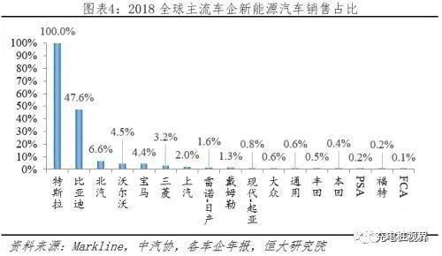 特斯拉、比亞迪新能源車型滲透率遠(yuǎn)超其他車企,美國、日本車企電動(dòng)化轉(zhuǎn)型步伐較慢。分車企來看,2018年新能源汽車新車銷量占比,除特斯拉100%、比亞迪47.6%外,其他車企皆低于10%;其中北汽、沃爾沃、寶馬、三菱、上汽超過2%,通用、福特、豐田、本田等不到1%。