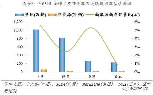 中國新能源乘用車滲透率最高,遠(yuǎn)超歐盟、日本。據(jù)中汽協(xié)、ACEA、Markline等機(jī)構(gòu)統(tǒng)計(jì),2019H1中國、歐盟、美國、日本乘用車分別銷售1012.70、818.36、259.38、228.57萬輛;其中新能源乘用車分別銷售56.29、19.78、13.65、1.73萬輛,各占比57.19%、20.10%、13.87%、1.76%;對(duì)應(yīng)新能源車型(EV+PHEV)滲透率分別為5.56%、2.42%、5.26%、0.76%。日本新能源乘用車滲透率較低是因?yàn)椋篐EV車型較多,據(jù)經(jīng)濟(jì)產(chǎn)業(yè)省披露2018年日本市場(chǎng)HEV占比31.84%。美國新能源乘用車滲透率較高是因?yàn)椋撼擞密囌急鹊?,?jù)Markline披露,2019H1美國乘用車、輕卡分別銷售259.38、584.47萬輛。