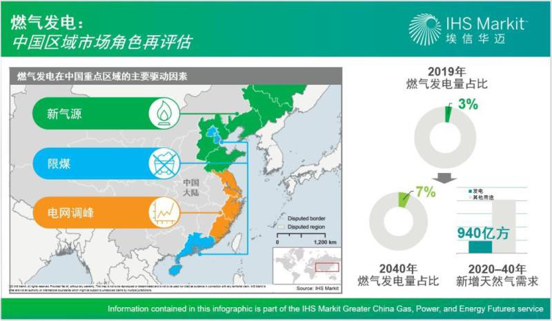 IHS Markit(埃信華邁)對(duì)中國(guó)的氣電發(fā)展前景持樂(lè)觀看法。我們預(yù)計(jì)燃?xì)獍l(fā)電裝機(jī)容量在2040年將達(dá)到3.41億千瓦。盡管天然氣在發(fā)電結(jié)構(gòu)中所占的比例仍相對(duì)較低——僅為7%,但發(fā)電用氣消費(fèi)增量卻十分龐大,估計(jì)超過(guò)900億立方米,占2020-2040年間新增天然氣需求的四分之一。
