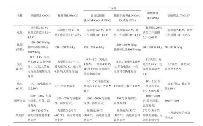 表1常用鋰離子電池技術(shù)對比Table 1Common lithium-ion battery technology comparison