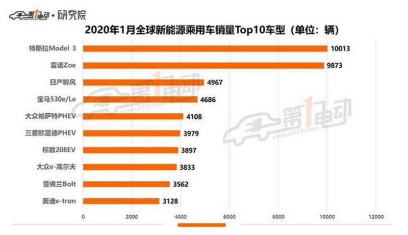 1、雷諾Zoe取得上市以來最高單月銷量紀(jì)錄,與Model 3僅相差百余輛,這也是12個月以來亞軍車型與Model 3差距最小的一次;