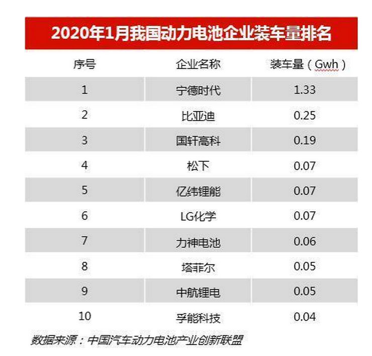 1月寧德時(shí)代裝機(jī)量為1.3GWh,同比下跌37.7%,但市場(chǎng)份額仍維持在高位。