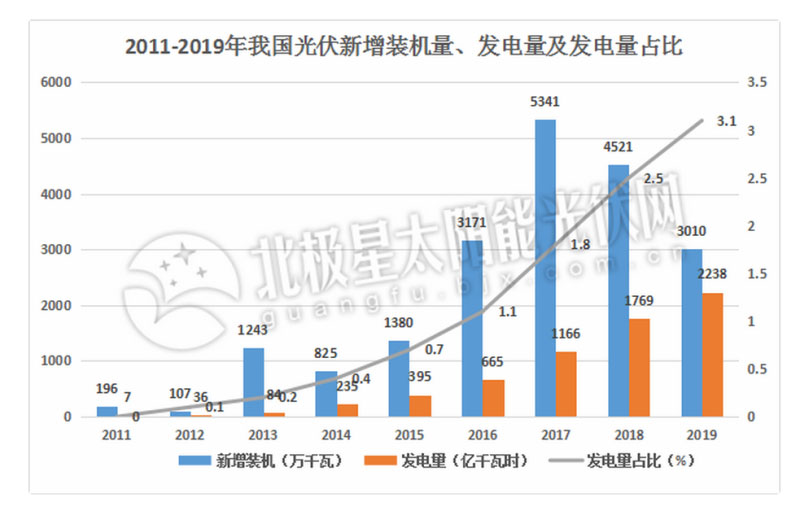 在太陽(yáng)能發(fā)電領(lǐng)域,發(fā)展趨勢(shì)同樣向喜。截止2019年底,我國(guó)太陽(yáng)能發(fā)電累計(jì)裝機(jī)容量已達(dá)20468萬(wàn)千瓦時(shí),其中光伏發(fā)電20426萬(wàn)千瓦;太陽(yáng)能發(fā)電量也是一路高歌猛進(jìn),2019年全國(guó)太陽(yáng)能發(fā)電量2238億千瓦時(shí),同比增長(zhǎng)27%,占全國(guó)總發(fā)電量的3.1%, 不得不說(shuō)我國(guó)的太陽(yáng)能發(fā)電產(chǎn)業(yè)發(fā)展速度確實(shí)飛快,但與之相比,我國(guó)太陽(yáng)能光伏發(fā)電的利用率就顯得不甚樂(lè)觀了。