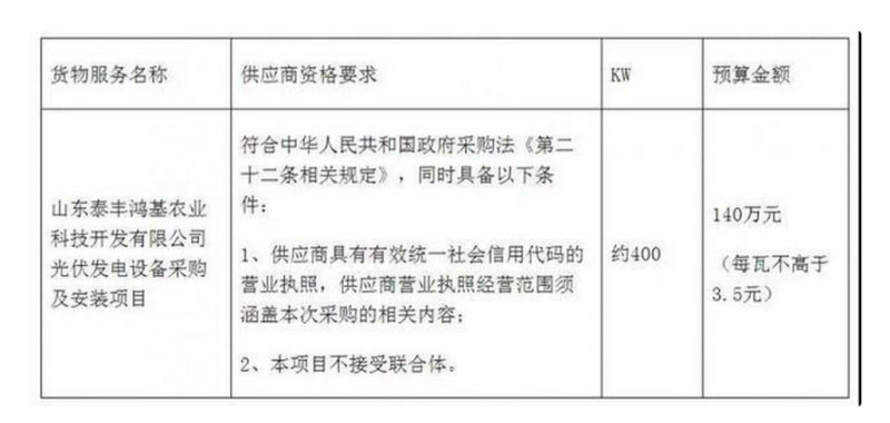 二、最高限價3.5元/W 山東泰豐農(nóng)業(yè)光伏發(fā)電設(shè)備采購及安裝項目