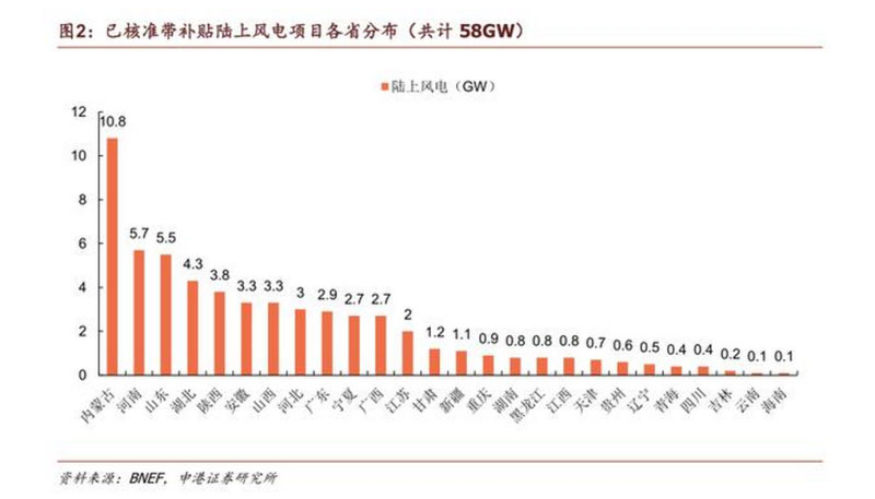 搶裝潮將把2020年市場推向一個高點(diǎn),然而我們認(rèn)為2021年之后行業(yè)發(fā)展空間仍然巨大。本次風(fēng)電搶裝和以往相比最大的不同,在于搶裝項(xiàng)目中除了帶補(bǔ)貼存量已核準(zhǔn)項(xiàng)目,還有配套特高壓建設(shè)的風(fēng)電大基地項(xiàng)目。風(fēng)電大基地項(xiàng)目的建設(shè)進(jìn)度,在很大程度上取決于相配套的特高壓項(xiàng)目的建設(shè)情況和投運(yùn)時間,為其消納提供保障。由于項(xiàng)目總裝機(jī)容量大、規(guī)模效益突出,極大提升平價時代市場需求,拉動風(fēng)機(jī)出貨量。2019年,由于內(nèi)蒙古從紅色預(yù)警減弱為橙色,多個風(fēng)電大基地項(xiàng)目得以開工。除了內(nèi)蒙,青海、河北等地的風(fēng)電大基地亦在加速推進(jìn),所有在建及計劃內(nèi)風(fēng)電大基地總規(guī)模近40GW。