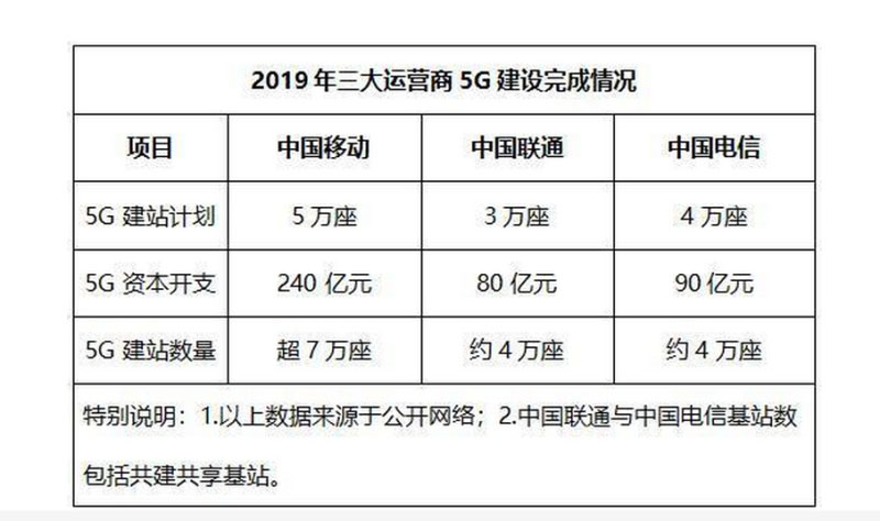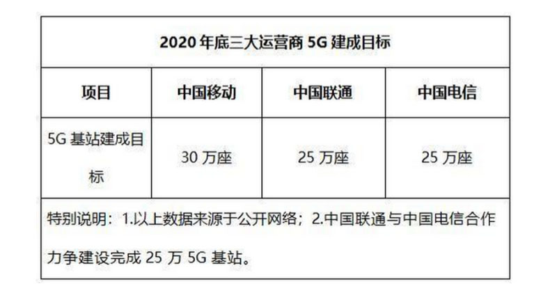 最新的公開(kāi)信息顯示,中國(guó)電信和中國(guó)聯(lián)通計(jì)劃在2020年上半年完成47個(gè)地市、10萬(wàn)基站的共同建設(shè)任務(wù),力爭(zhēng)今年三季度完成全國(guó)25萬(wàn)座基站的既定目標(biāo),較原定計(jì)劃提前一個(gè)季度完成全年建設(shè)目標(biāo)。中國(guó)電信與中國(guó)聯(lián)通25萬(wàn)座的基站建成目標(biāo)僅比中國(guó)移動(dòng)公布到2020年底將完成30萬(wàn)座基站的建成任務(wù)少了5萬(wàn)座。