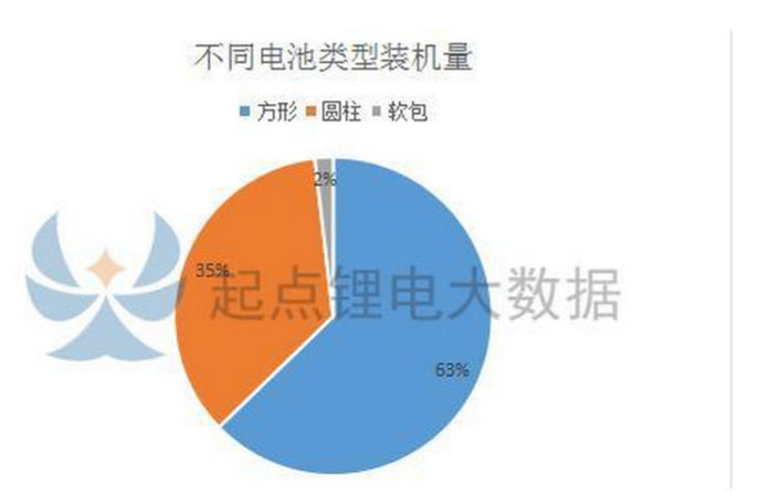 從電池封裝類(lèi)型來(lái)看,方型電池裝機(jī)量為376.1MWh、占比63%,圓柱電池裝機(jī)量為212.3MWh、占比35%,軟包電池裝機(jī)量為11MWh、占比2%。