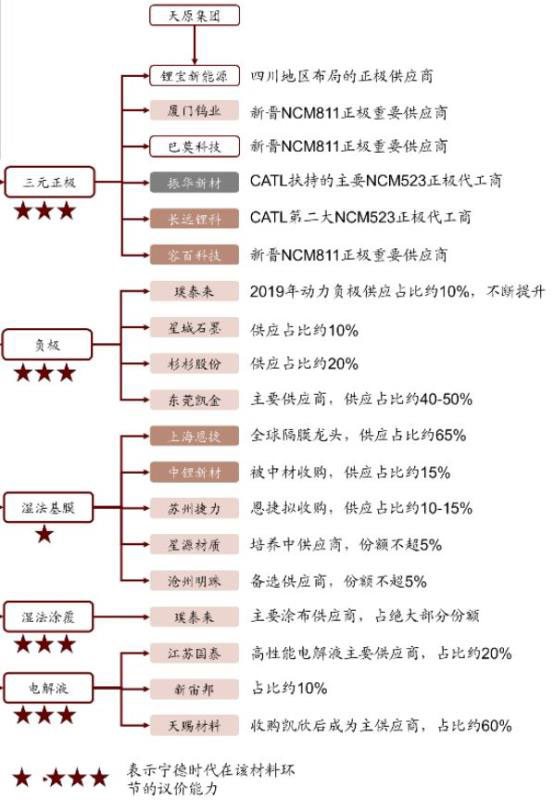 (1)天賜材料:收購(gòu)凱欣后,成為寧德時(shí)代的主力供應(yīng)商,占比約60%;