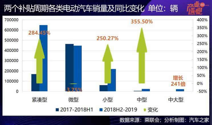 撬動(dòng)中國(guó)電動(dòng)汽車(chē)市場(chǎng)結(jié)構(gòu)變化的最直接因素是補(bǔ)貼導(dǎo)向,2018年6月12日是一個(gè)分水嶺,觀察這一時(shí)間點(diǎn)前后電動(dòng)市場(chǎng)結(jié)構(gòu)的變化,可以清晰地發(fā)現(xiàn)補(bǔ)貼越高的車(chē)型類(lèi)別,漲幅越大,2019年補(bǔ)貼更優(yōu)待的緊湊車(chē)型和小型車(chē)市場(chǎng)份額走高。這個(gè)結(jié)構(gòu)演變趨勢(shì)在補(bǔ)貼一旦退出之后,會(huì)不會(huì)繼續(xù)??jī)r(jià)格將是重要的影響因素之一。