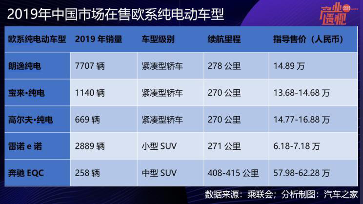 那么中國(guó)消費(fèi)者會(huì)買(mǎi)單嗎?截止目前,歐洲車(chē)企尚未在中國(guó)大規(guī)模投放電動(dòng)車(chē)型,2019年僅5款車(chē)型在售,緊湊級(jí)車(chē)型3款,小型車(chē)1款,中型豪華品牌車(chē)1款,累計(jì)批發(fā)銷(xiāo)量1.27萬(wàn)輛。然而以寶馬和大眾在插電式混合動(dòng)力板塊已經(jīng)于一年之中快速改變了中國(guó)市場(chǎng)的競(jìng)爭(zhēng)格局,一旦歐系電動(dòng)產(chǎn)品大規(guī)模進(jìn)入,消費(fèi)者大概率還是會(huì)買(mǎi)單的,尤其是在一二線城市。