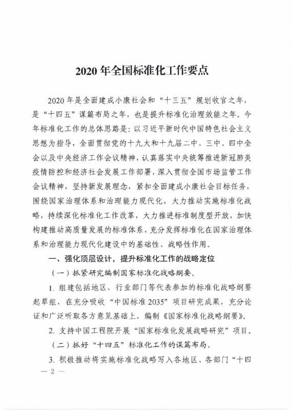 中國(guó)儲(chǔ)能網(wǎng)訊:2020年3月10日,國(guó)家標(biāo)準(zhǔn)化管理委員會(huì)印發(fā)《2020年全國(guó)標(biāo)準(zhǔn)化工作要點(diǎn)》,從五個(gè)方面117點(diǎn)提出2020年的全國(guó)標(biāo)準(zhǔn)化工作要點(diǎn):