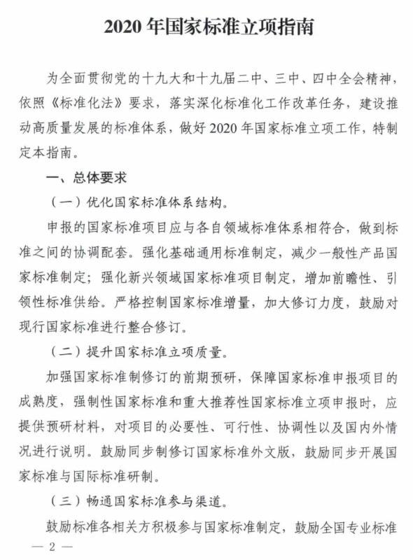 中國儲能網(wǎng)訊:近日,國家標(biāo)準(zhǔn)化管理委員會印發(fā)《2020年國家標(biāo)準(zhǔn)立項(xiàng)指南》。